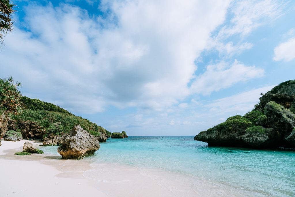Miyakojima, also known as Miyako Island, is the fourth largest island in Okinawa Prefecture. This flat coral island features dazzling white sand beaches, crystal-clear turquoise waters, and dramatic coral rock formations. On a sunny day, Miyakojima truly shines at its best. As all the Miyako Islands are solely formed by emerged coral reefs, they are all flat islands (without mountains and rivers). The water around the Miyako Islands stay clear even after heavy rain, which is because rain water gets absorbed quickly and filtered by coral rocks underneath the ground, and eventually water comes out into the sea from underground river channels after many years of filtration. This is the reason why the Miyako Islands are known for some of the clearest waters in the world. The Miyako Islands are more sunny due to the flat geography, compared to those islands with mountains and rainforests, which are known to attract and create rainy clouds. The Miyako Islands are also a paradise for off-the-beach snorkeling lovers. You can see many kinds of tropical fish, sea turtles and colorful lush coral close to many of the beaches.